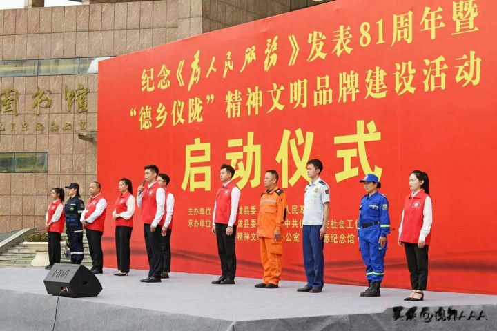 启动仪式上,集体诵读了《为人民服务》节选,“德乡仪陇”志愿服务活动图片展正式开展,11名志愿服务队的志愿者代表分别宣誓,以此引领辖区居民、单位、学校等开展理论宣讲、全民阅读、志愿服务等形式多样的新时代文明实践活动,推动形成崇德向善、涵养文明的生动局面。